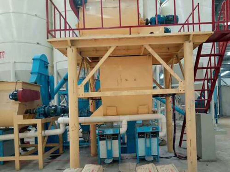 膩?zhàn)臃圩詣?dòng)生產(chǎn)線,是將雙飛粉、石膏粉、羧甲基纖維粉、緩凝劑、增稠劑等原料混合成膩?zhàn)臃鄄?shí)現(xiàn)其連續(xù)性生產(chǎn)的專業(yè)生產(chǎn)設(shè)備。典型的膩?zhàn)臃凵a(chǎn)線,用于原料儲(chǔ)存-計(jì)量配料-物料混合攪拌-成品包裝,以及膩?zhàn)臃凵a(chǎn)流程中的原料輸送、提升和除塵等生產(chǎn)設(shè)備。